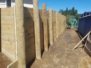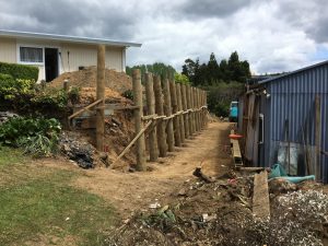 This character property in Te Puna sported a very tired retaining wall which was starting to look threatening to the well-being of the nearby shed.